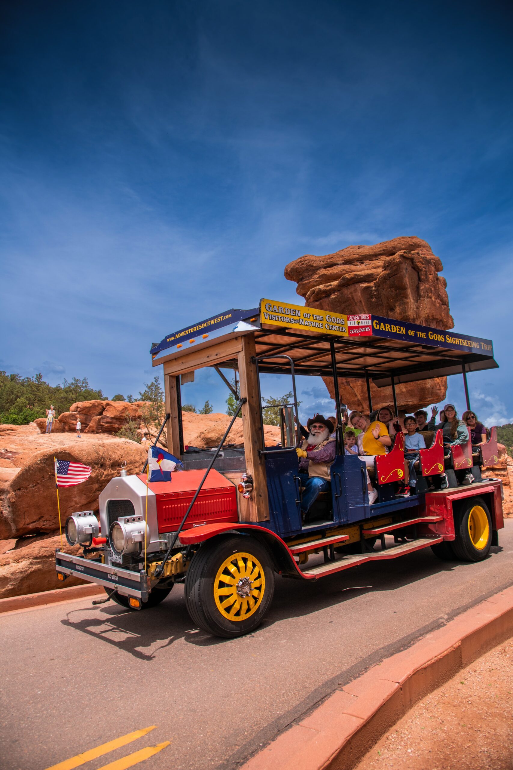 Travel back in time, more than 100 years, to when Garden of the Gods became a city park. Our custom and open-air trolley seats 14 guests and provides fantastic views around the entire park.