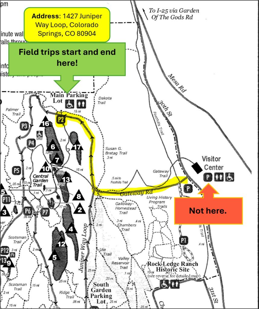 No charge for Title I Schools. Grant provided by FOGG (Friends of Garden of the Gods). Reservation Required Total must include students, teachers, chaperones, and non-participants.