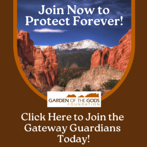 In 1909, Charles Perkins‘ children, knowing their father’s feeling for the Garden of the Gods, conveyed his four-hundred eighty acres to the City of Colorado Springs. It would be known forever as the Garden of the Gods